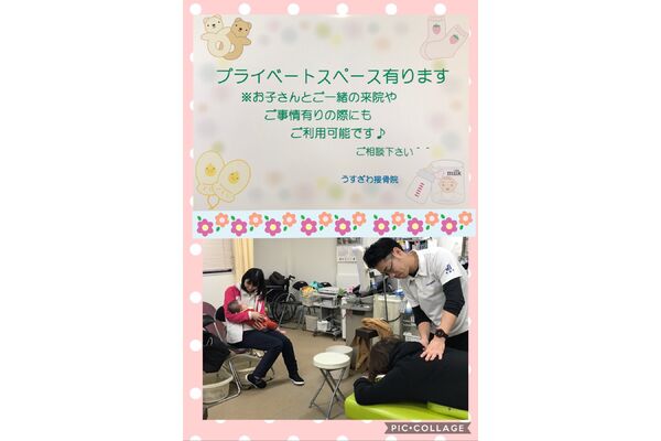 予約診療では、このようにお子様連れの方や初めての場所に不安がある方に、接骨院がどんな所かを見学していただくなどしています