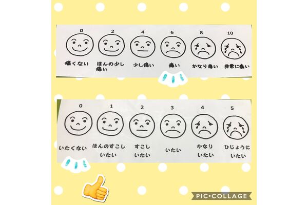 そこで写真のような表を使い患者様に痛みを教えてもらいます。